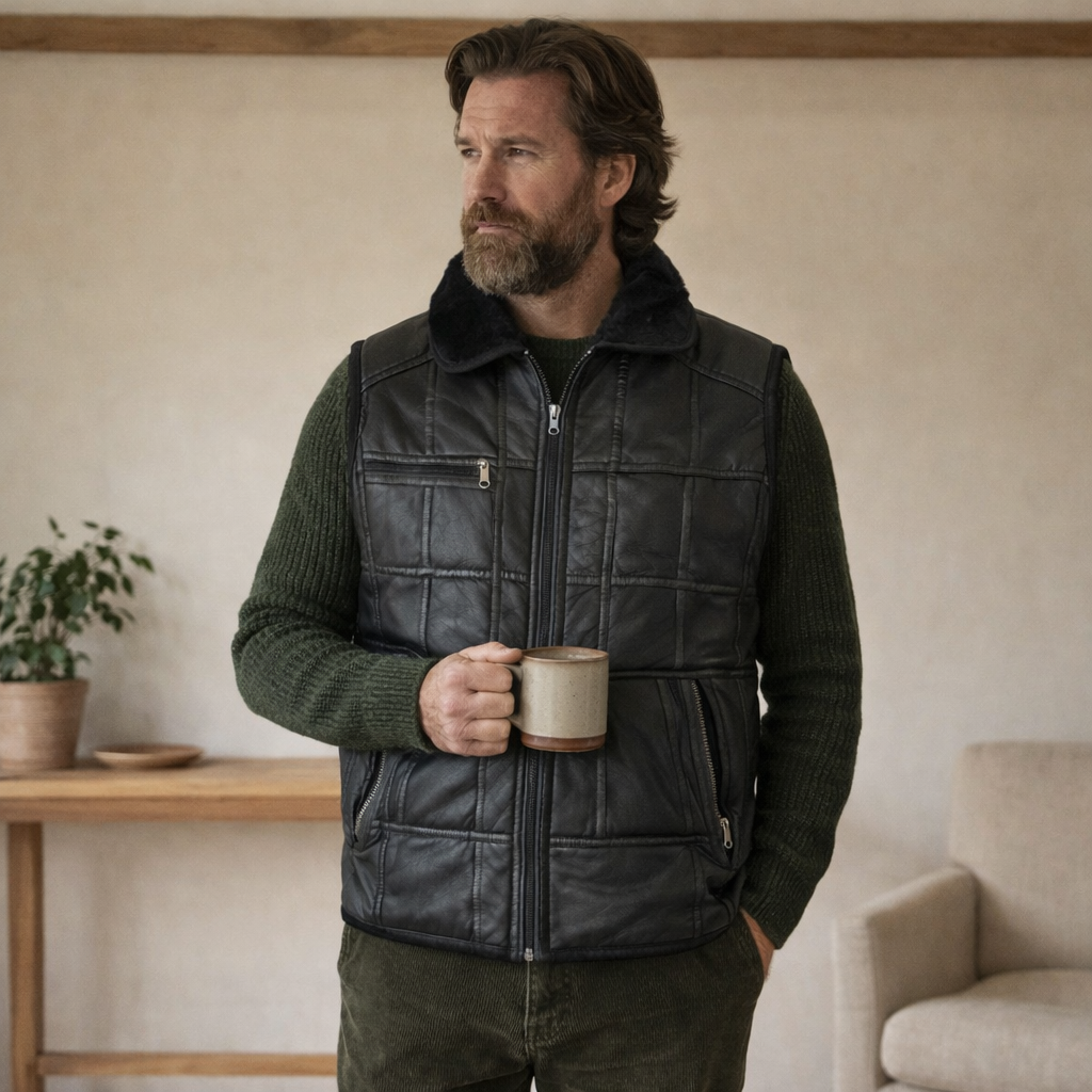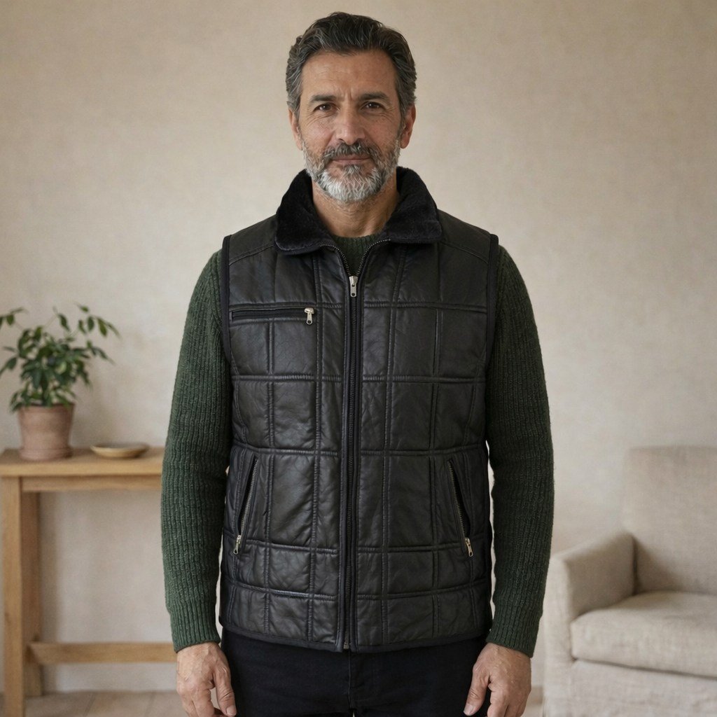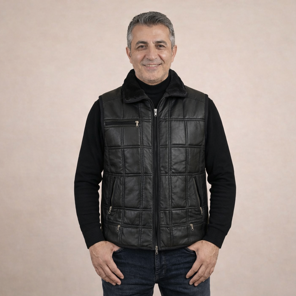 "Bu yelek, Anadolu'nun geleneksel 'Kırkyama' tekniği ile usta ellerde bir araya getirilmiştir. Dışı rüzgarı kesen %100 hakiki parça deri, içi ise sizi en soğuk günlerde bile sıcak tutacak doğal kürktür. Her parça benzersizdir."